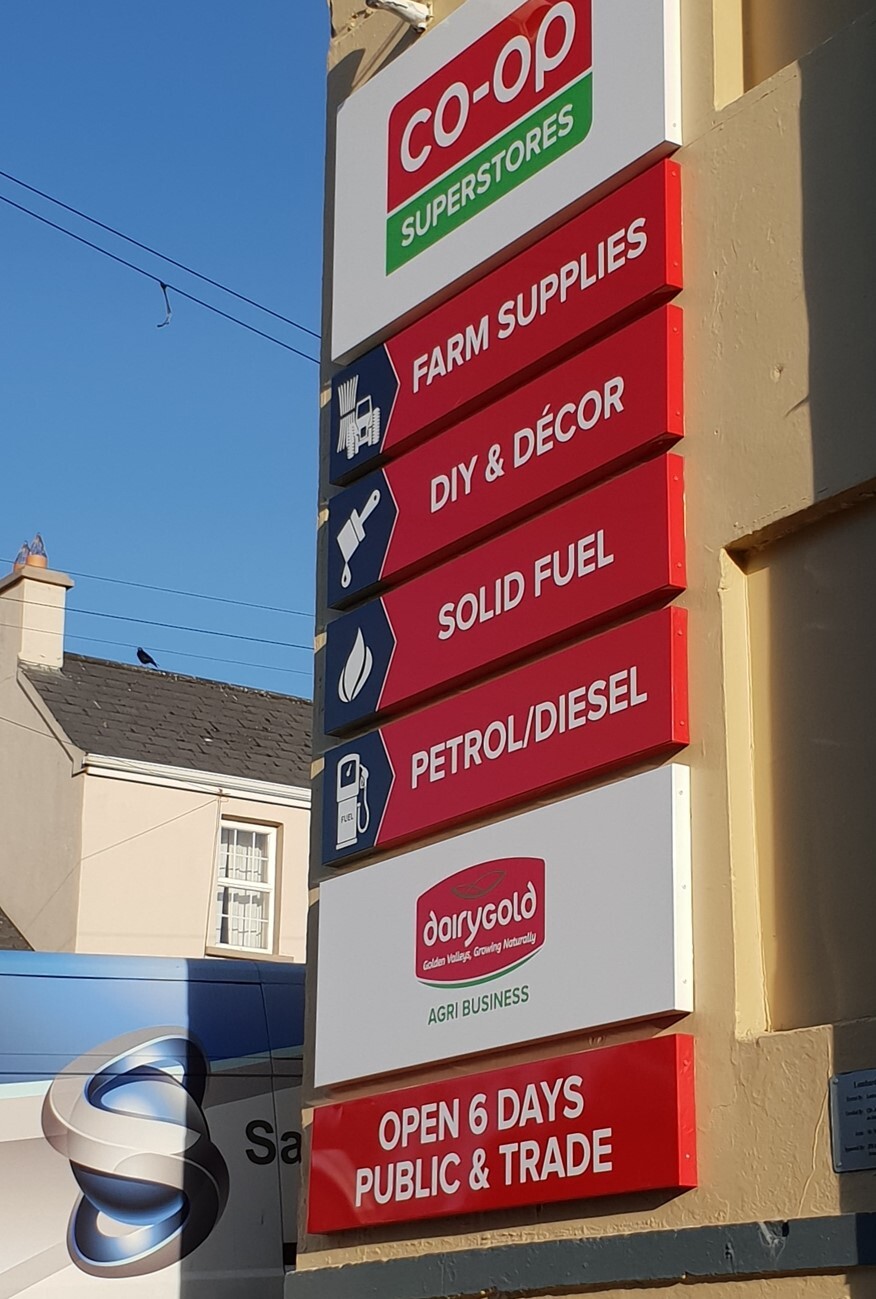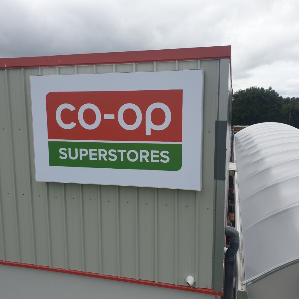 Also called Folded Aluminium signs, very typical in shopping centres and for a clean external look Essentially this type of shop front sign looks like a box. It’s made from folding a sheet of material and then welding/fixing the corners. Graphics can then be applied to the front of the shop sign whether that’s a digitally printed graphic, or individual letters or there are plenty of options such as LED lighting. These signs are striking and self – contained with little fittings showing.